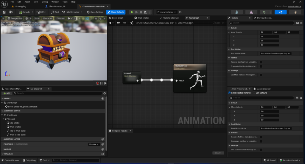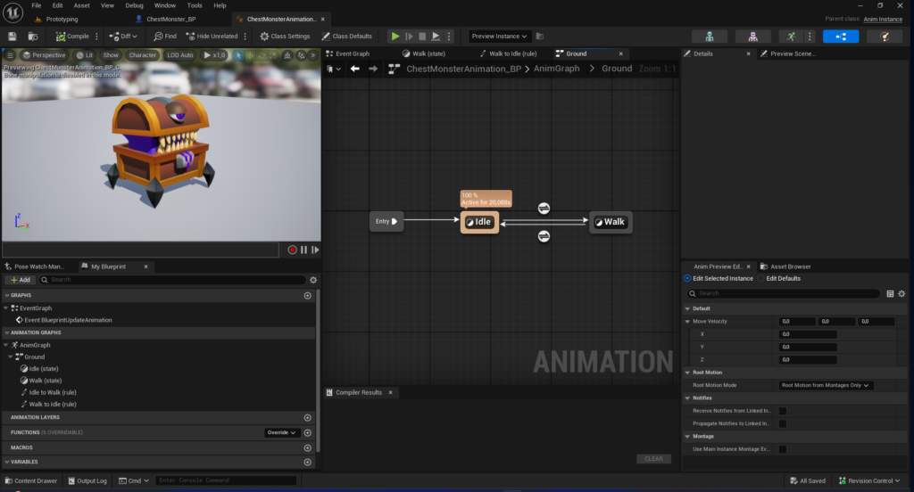 Jeg fik en introduktion til Animation Blueprints i Unreal Engine, og hvordan man bruger dem på ens karaktere. Hvis man har en masse animationer til en karakter eller en fjende, så kan man lave det der hedder Animation Blueprints, for at få lov til at ændre animation afhængig af hvad der sker med ens karakter. Hvis man bevæger sig fremad, kan man få den til at spille en walk animation, hvor hvis den står stille kan man få den til at spille en Idle animation. Det er dette eksempel jeg har fulgt med I en video for at lave.