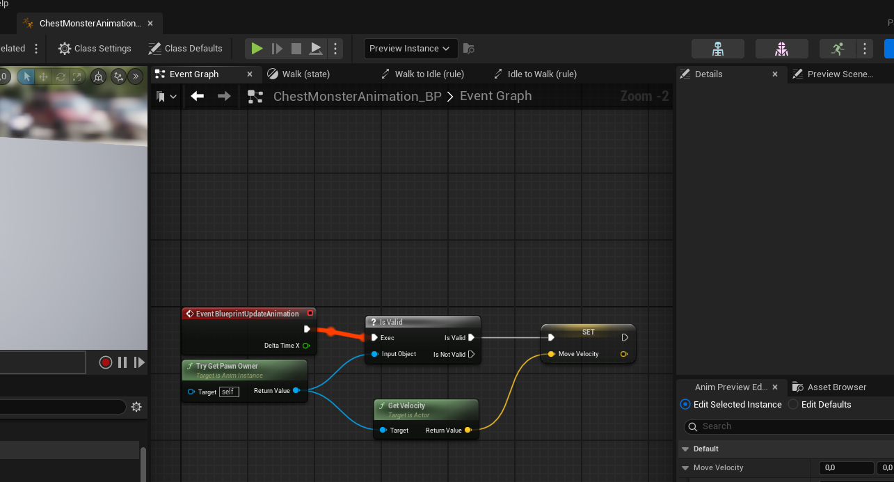 Men for at bruge min variabel Move Velocity, skal man sætte noget andet logik op også, og det er her animation blueprints har det de kalder for en event graph.